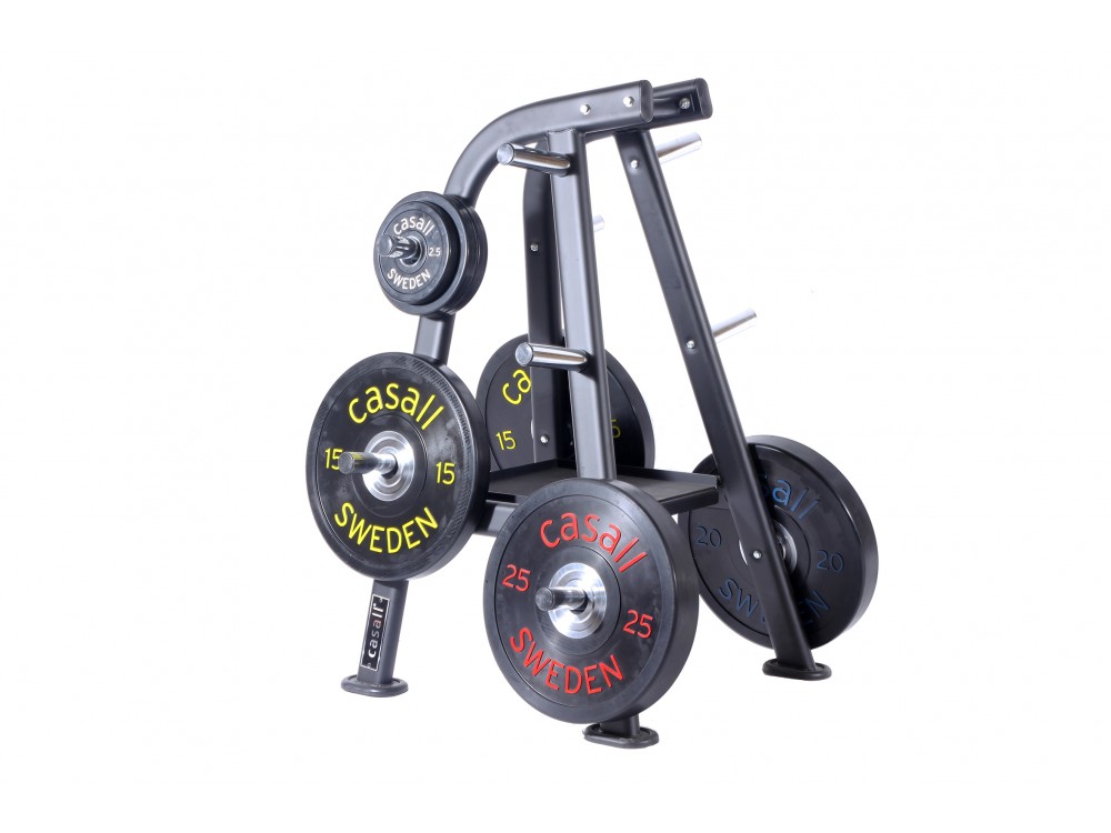 Smidigt viktställ där man ser och kan enkelt lyfta på och av internationella viktskivor. Stället har..